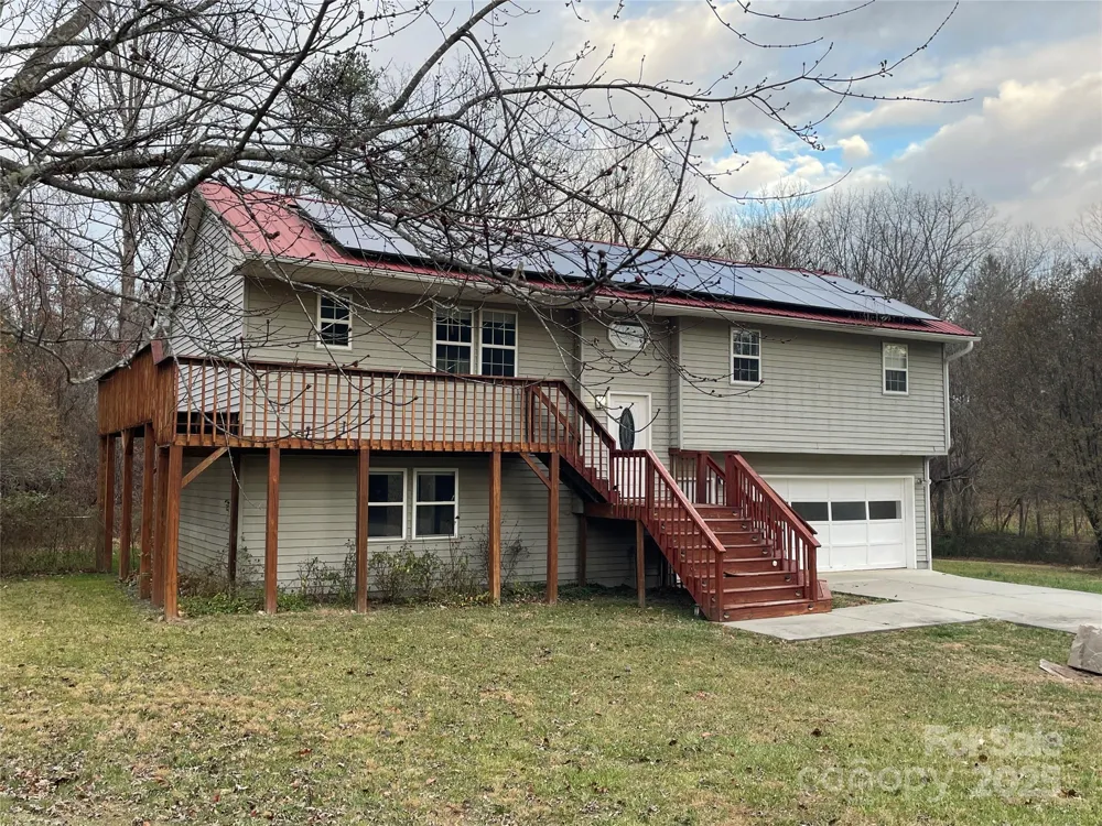 Short term rental allowed-No HOA. Open floor plan with cathedral ceiling welcomes you home-a great setting for gatherings or spreading out on your own. The lower-level Bed/Bonus room is massive—use it as a bedroom, group hangout, a guest retreat. Closet runs along the width of the lower level bonus room - tons of storage space! This property (2 adjacent parcels) offers a rare, huge level yard—ideal for play, pets or gardening. Enjoy the peace and quiet of this neighborhood while conveniently located only 18 min to Asheville Airport and 25 min to DT Asheville.