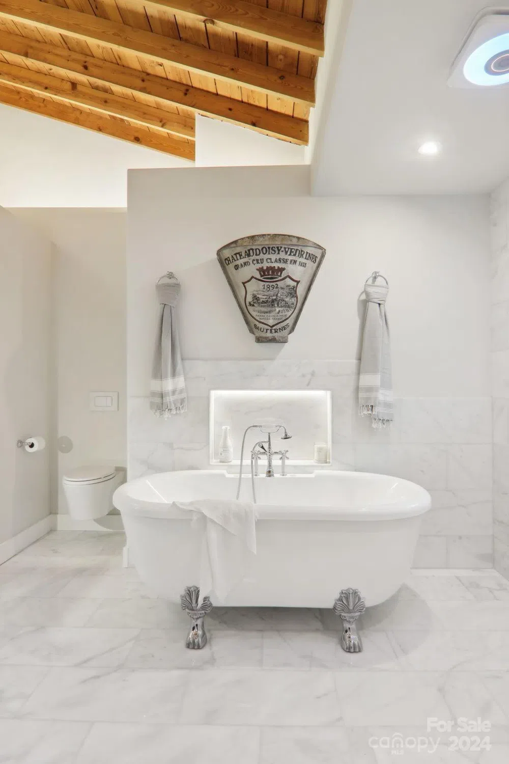 Light, bright, airy, and elegant. Located in a charming neighborhood, this lovely home has recently undergone a luxurious renovation that is an elegant blend of old versus new, with upgrades seldom found at this price point. At the heart of the home is an open, custom kitchen featuring new, high-end appliances, quartz countertops, a mobile island with extra storage, and solid European Oak floors--stained to match the original solid Oak floors in the bedrooms and great room. The solid marble bathrooms for each of the 2 bedrooms are breathtaking, and feature zero entry showers with a classic, stand-alone whirlpool tub and vaulted ceiling in the primary ensuite. It has an oversized 1 car garage and a covered stone porch off of the den with views of the fire pit. There is tons of storage in the unfinished basement. It's in a great location, on a peaceful cul-de-sac that backs up to the new Escueta Trail. Just 1 mile from Main St in Hendersonville and only 10 miles to the Asheville Airport.