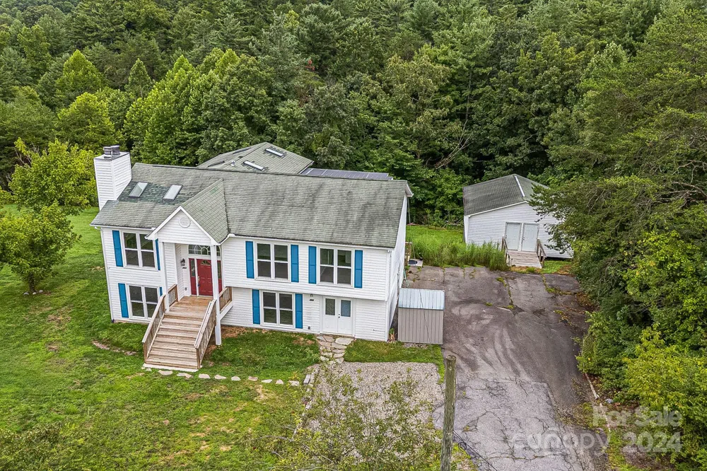 Welcome to this magnificent home in North Asheville. This unique property offers an incredible investment opportunity, with distinct areas that exude charm and character. The main living area features 3 bedrooms and 2 bathrooms, with a bonus room offering a primary suite. It provides a spacious open floor plan with a fireplace, skylights, a large kitchen island, and a deck off the primary suite with mountain views. A cozy main level includes 2 bedrooms and 2 bathrooms, featuring a fireplace and plenty of windows and large glass doors that fill the area with natural light. Another charming area of the rear of the home contains 1 bedroom and 1 bathroom, with large rooms, skylights, and a deck providing spectacular views, offering a peaceful retreat for occupants. A detached building is divided into two storage units. There is also an additional vacant 1.82-acre lot, which will require septic and well installations. Mountain views abound at this vacant lot.